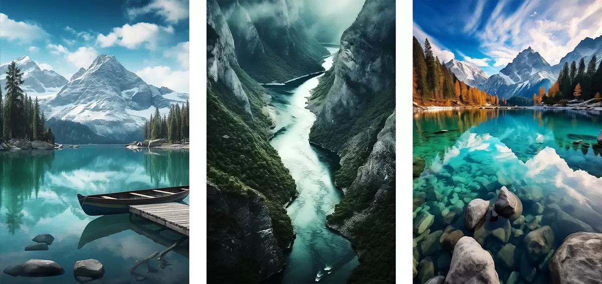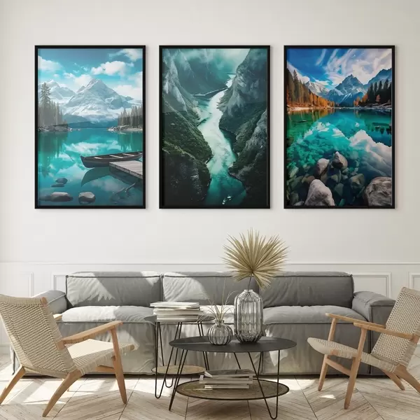 Poster Lacuri alpine și priveliști ale fiordurilor în nuanțe reci de verde-albastru d00961