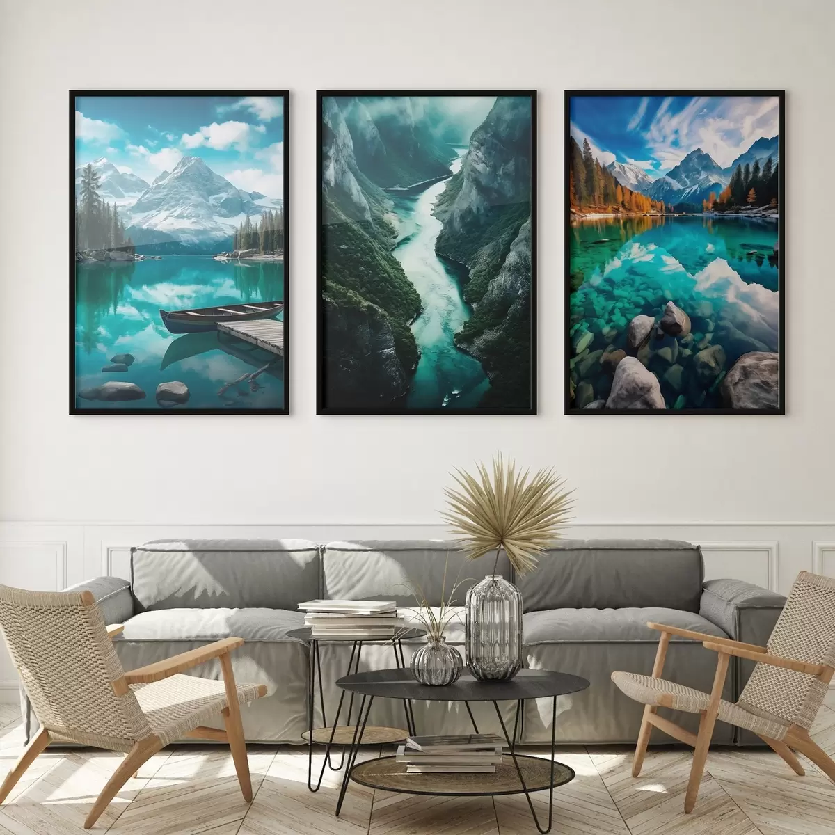 Poster Lacuri alpine și priveliști ale fiordurilor în nuanțe reci de verde-albastru Nr d00961