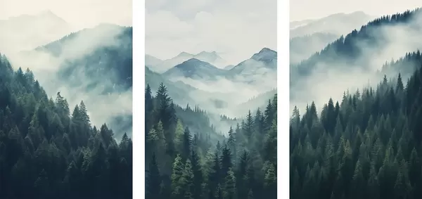 Poster Munții de pin învăluiți în nuanțe delicate de verde și albastru Nr d00964