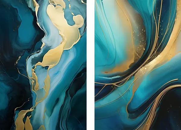 Poster Fluid abstract de culoare verde-albastru cu fluxuri metalice calde Nr d00965