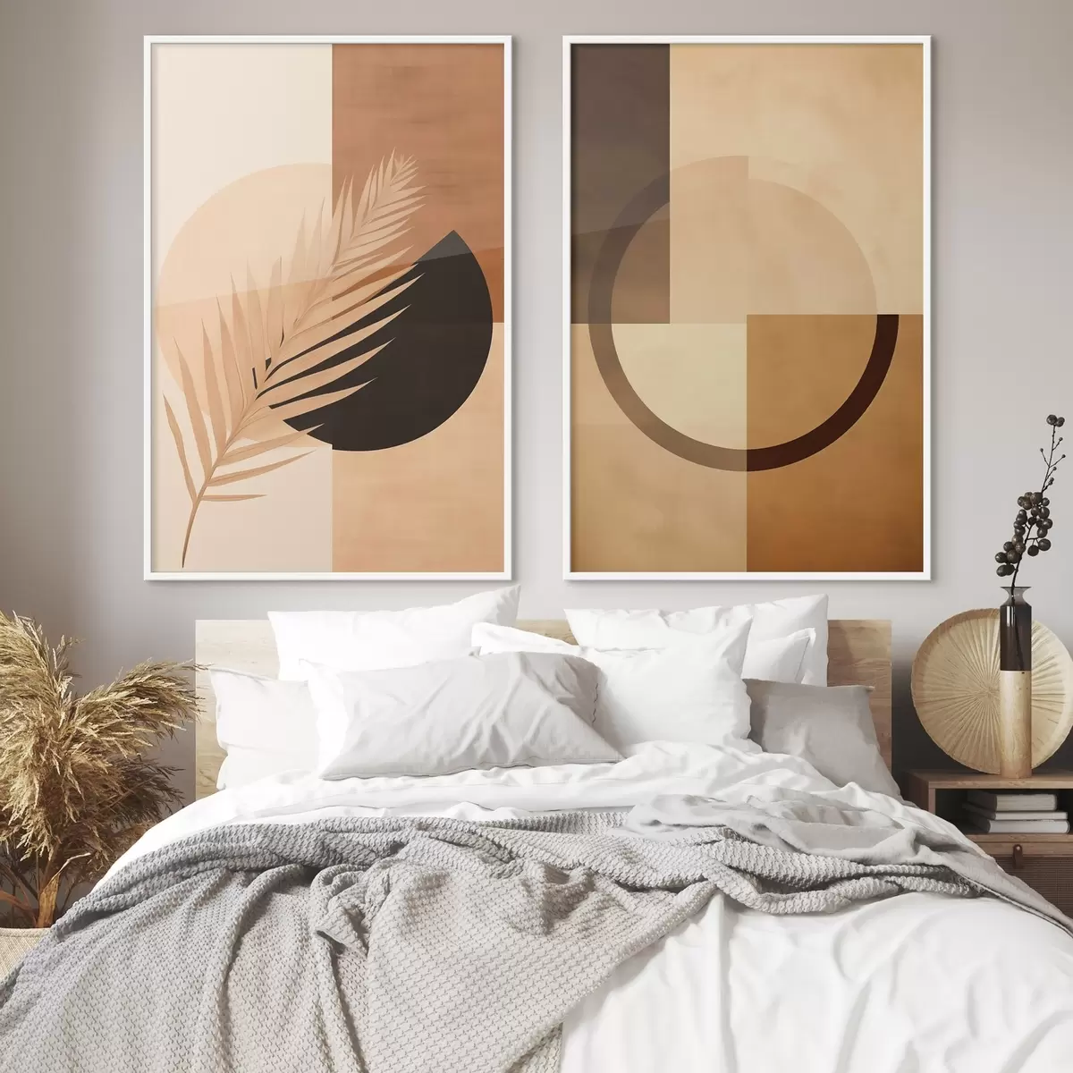 Poster Geometrie în teracotă și bej cu motiv de frunze de palmier Nr d00968