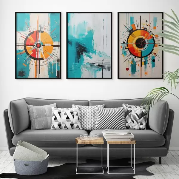 Poster Abstract radial cu explozii de culoare verde-albăstrui și portocaliu Nr d00973