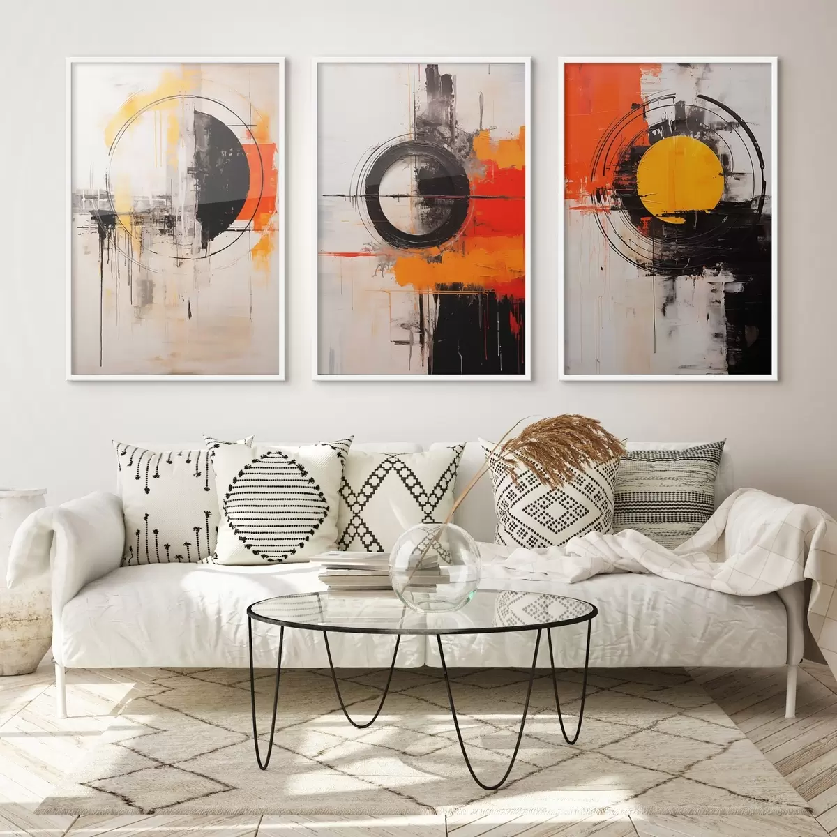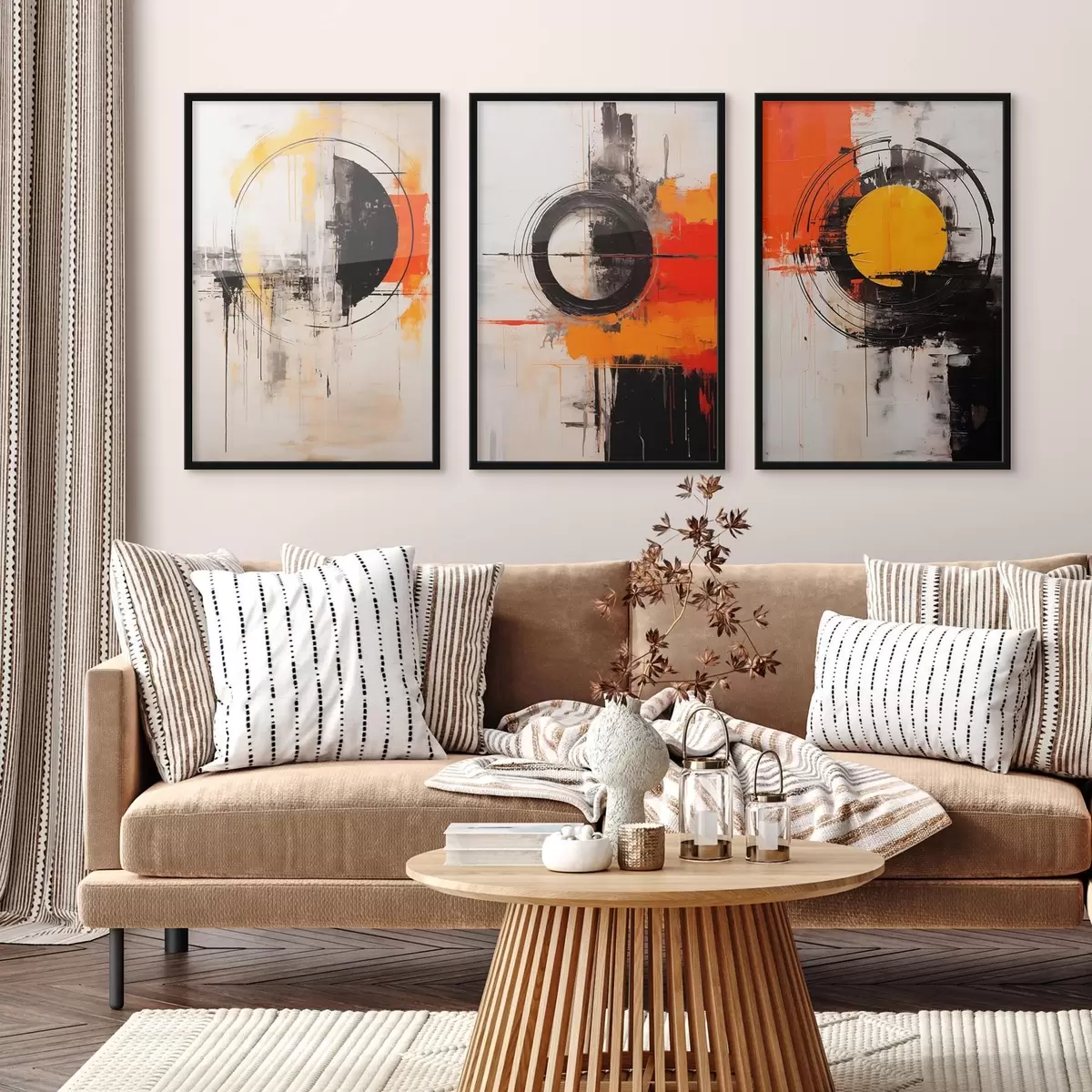 Poster Cercuri texturate și linii groase în negru, ocru, portocaliu Nr d00974