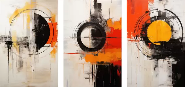 Poster Cercuri texturate și linii groase în negru, ocru, portocaliu Nr d00974