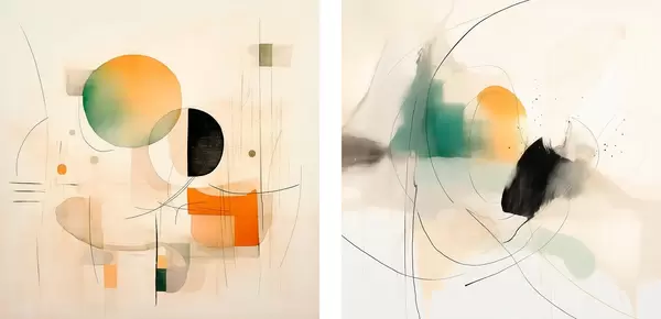 Poster Diptic abstract cu forme circulare și linii dinamice Nr d00981