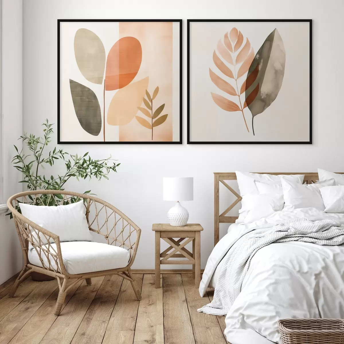 Poster Diptic cu motive botanice într-o paletă pastelată d00983