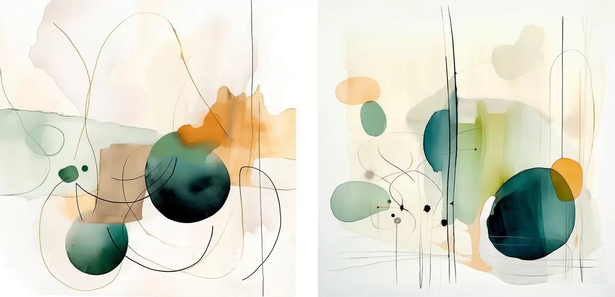 Poster Compoziție abstractă din două părți, cu pete de culoare delicată d00985