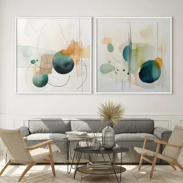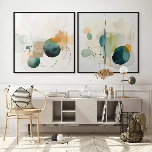Poster Compoziție abstractă din două părți, cu pete de culoare delicată Nr d00985