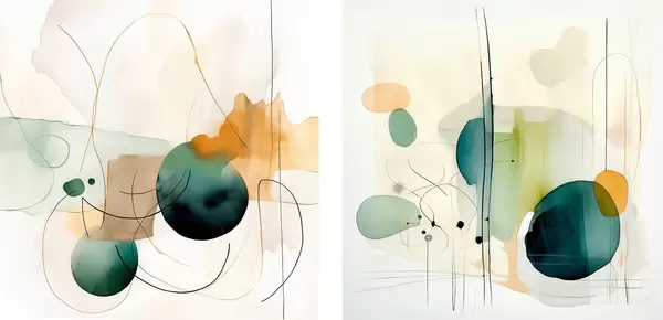Poster Compoziție abstractă din două părți, cu pete de culoare delicată Nr d00985