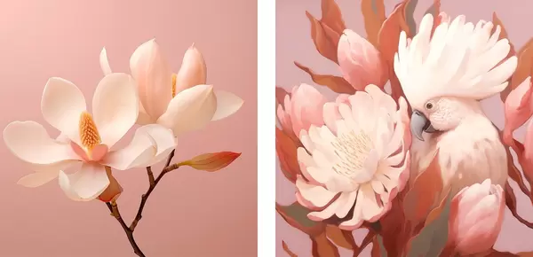 Poster Compoziție florală cu o pasăre în stil artistic ilustrativ Nr d00994