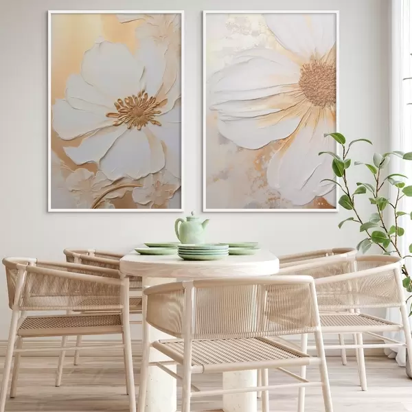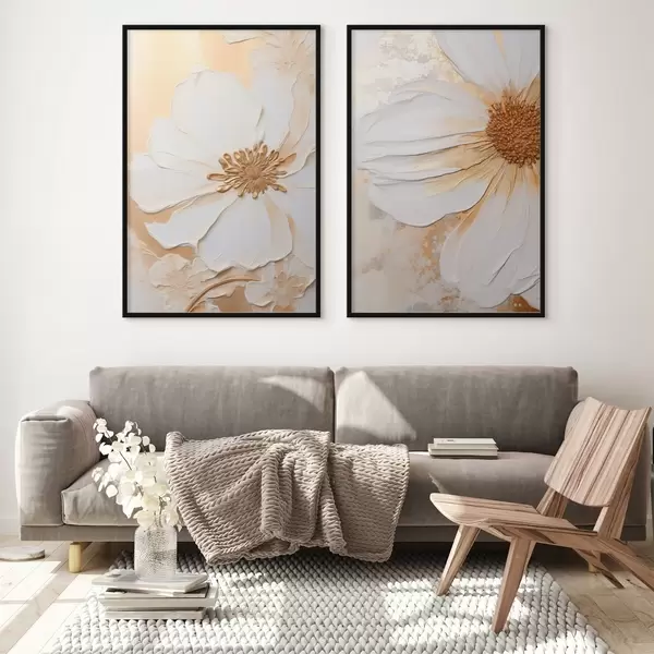 Poster O floare albă cu petale delicate, fundal abstract texturat, elegant, artă decorativă Nr d01006