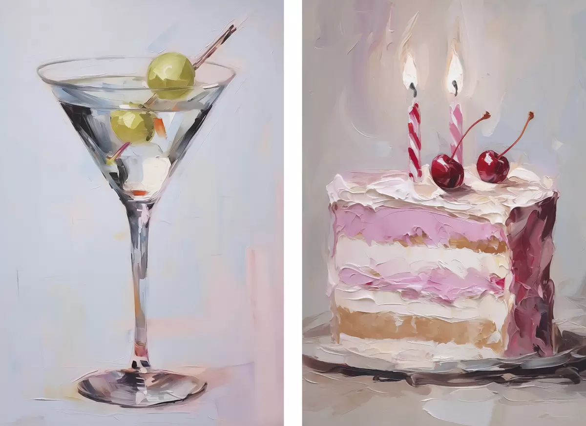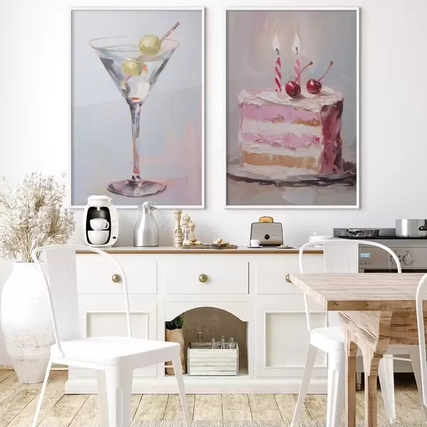 Poster Un pahar cu o băutură și o bucată de tort pictură imitație Nr d01019