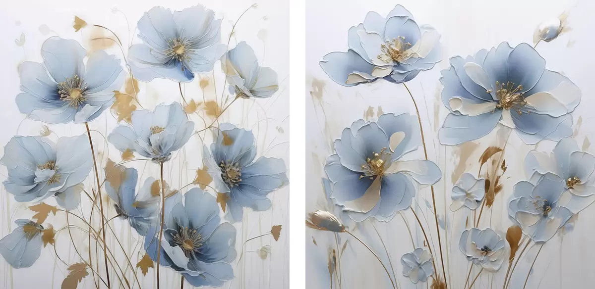 Trei tipuri de materiale sunt disponibile pentru comandă: Economic Canvas - un material dens și durabil pentru imprimarea digitală, identic cu pânza de pictor, suprafață impermeabilă, reproducere realistă a detaliilor, material cu granulație medie. Premium Canvas - textura seamănă cu cea a pânzei unui pictor (fire mici împletite). Reproducere moale, detaliată a imaginii pe o suprafață mată. Eco-Premium - țesătură 100% bumbac de înaltă calitate. Datorită fibrelor naturale de bumbac, materialul este durabil și rezistent la uzură. Reproducere excelentă a culorilor și a detaliilor.
