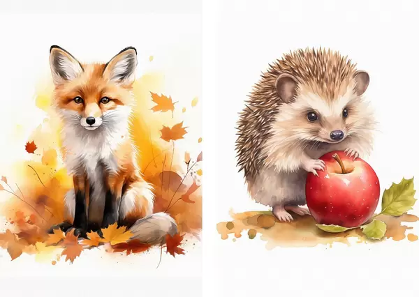 Poster Vulpe și arici, acuarelă imitație Nr d01050