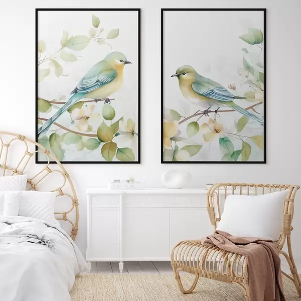 Poster Două pițigoi pe ramuri de iasomie Nr d01069