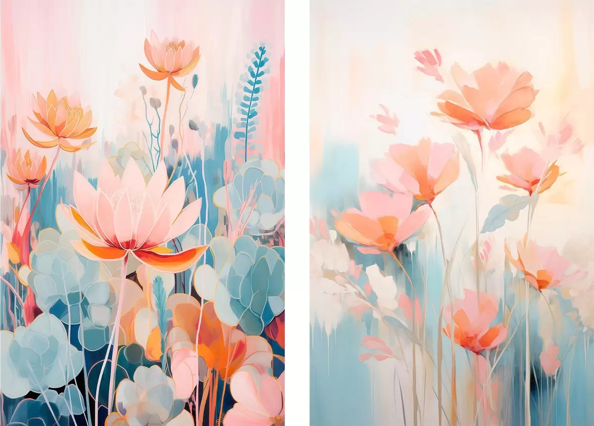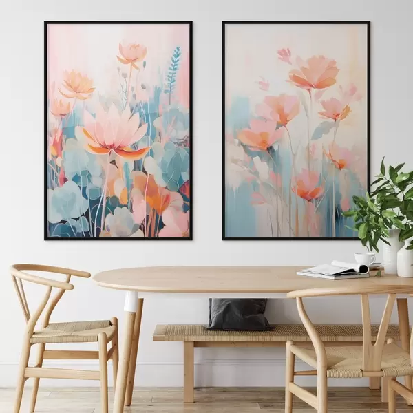 Poster Armonie acuarelă de flori într-o paletă roz și albastră Nr d01084
