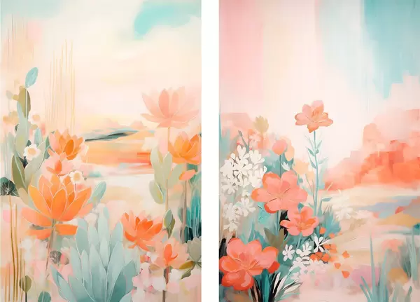 Poster Motivele florale în tonuri pastelate pe fundalul unei văi ușor încețoșate Nr d01085