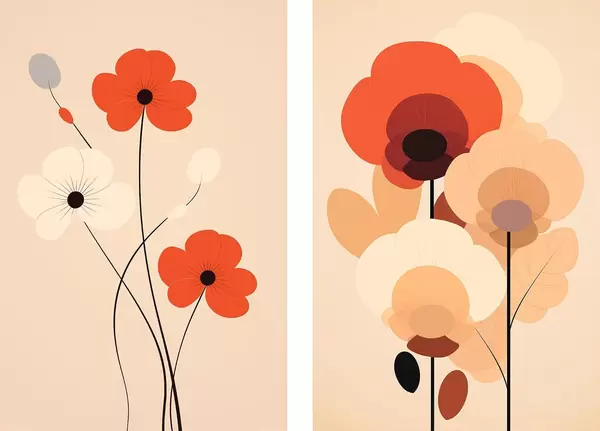 Poster Diptic floral minimalist în tonuri calde de bej-coral cu linii grafice d01090