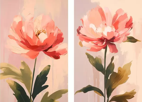Poster Bujori pastel pe tulpini înalte, în nuanțe calde de roz Nr d01093
