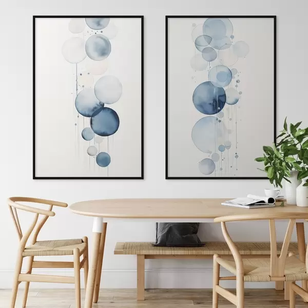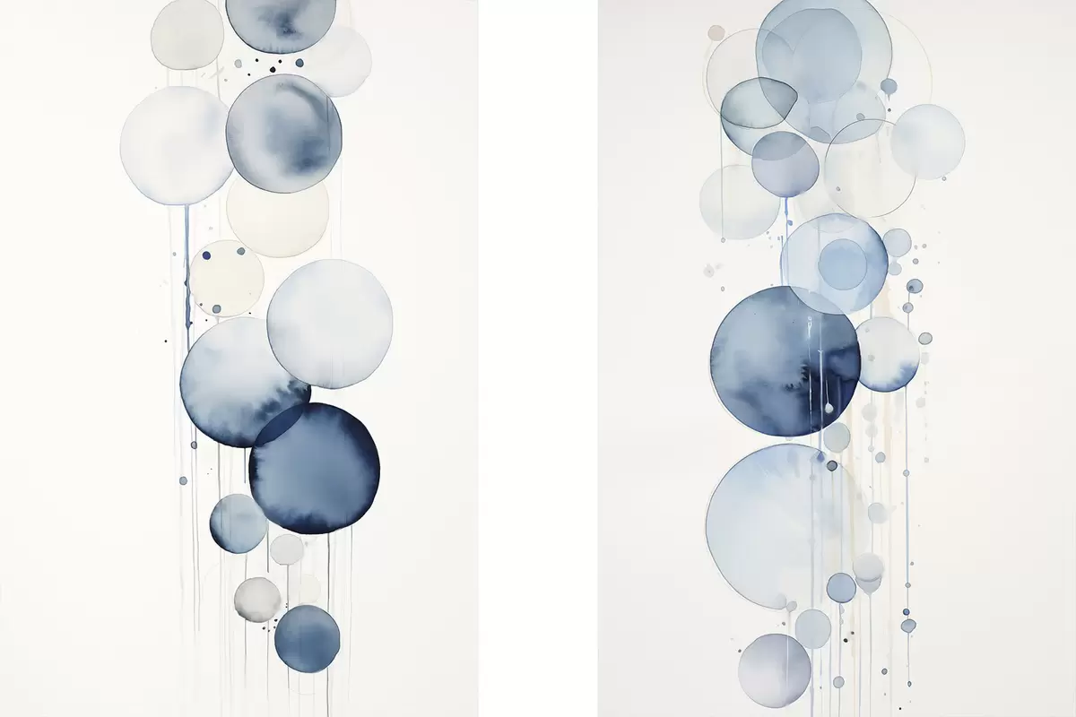 Poster Cercuri abstracte texturate albastre și albe, de diferite dimensiuni, pe fond alb Nr d01118
