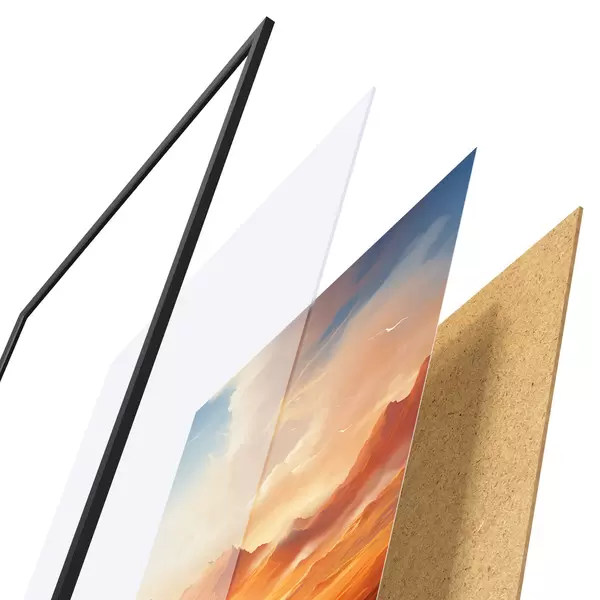 Afișul constă dintr-o ramă, plexiglas, imagine imprimată și suport din PAL. Posterul poate fi agățat imediat pe perete datorită suporturilor de pe spate.