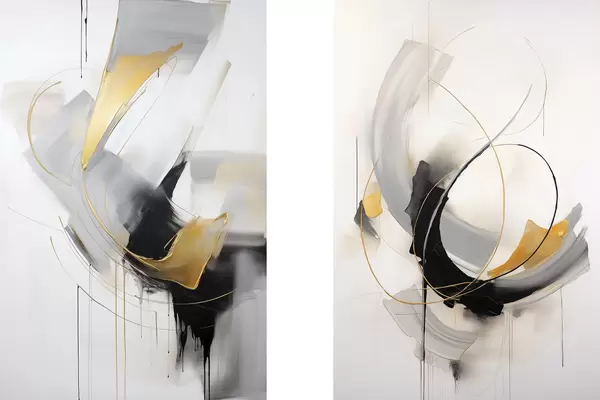 Poster Pictură abstractă cu imitații de pensule galbene, negre și albe, linii dinamice d01125