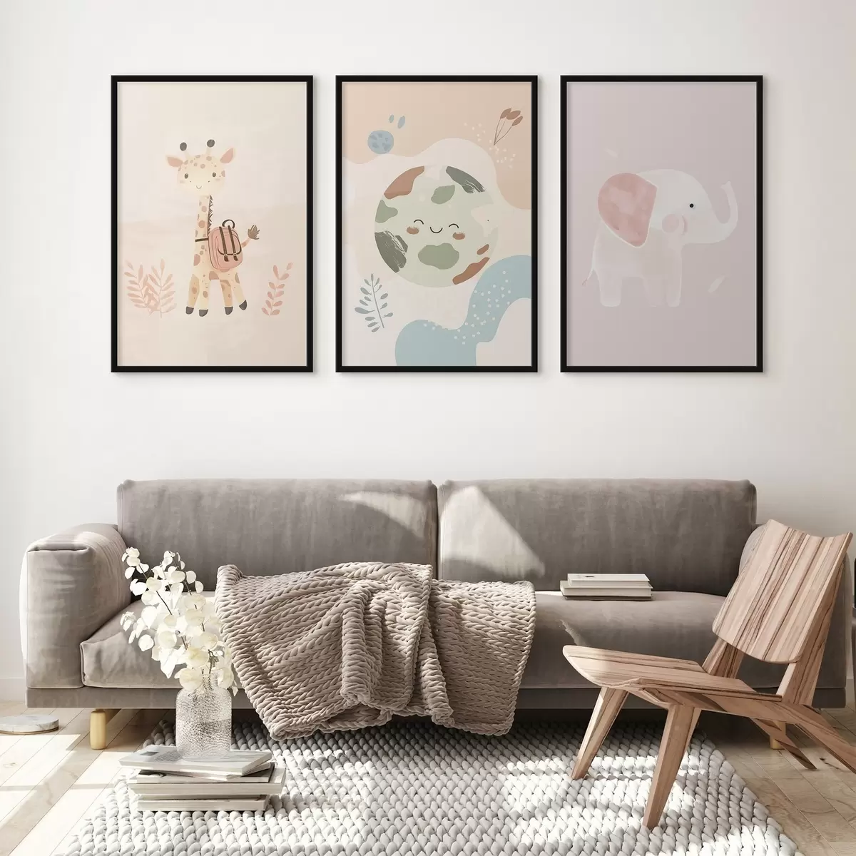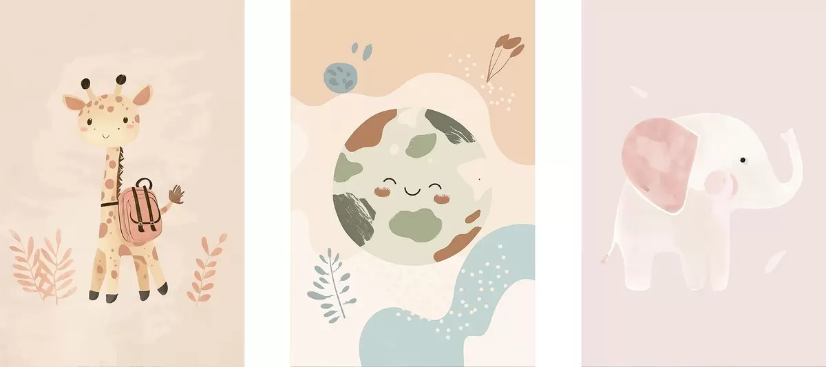 Poster Pământ, girafă și elefant Nr d01135