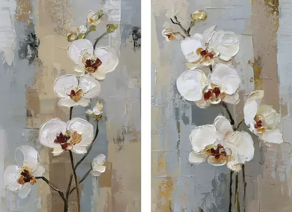 Poster flori de orhidee albe în stilul picturii în ulei Nr d01175