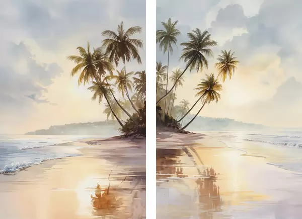 Poster plaja la apusul soarelui pe o insulă în stil acuarelă Nr d01177