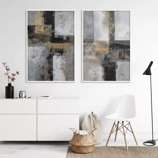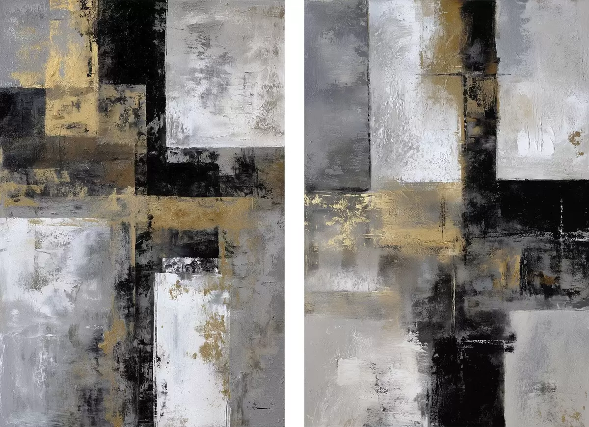 Poster abstracție contemporană texturală în nuanțe de negru, gri și alb d01179