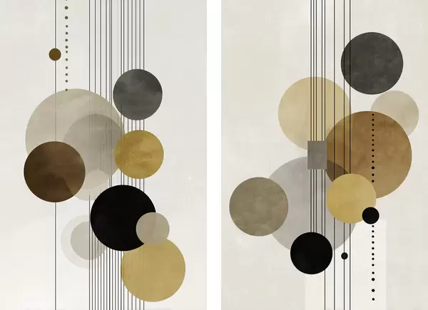 Poster abstracție cu cercuri și linii în culori calde d01182