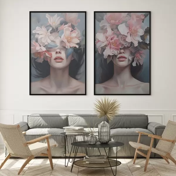 Poster Portret abstract feminin cu flori d01221