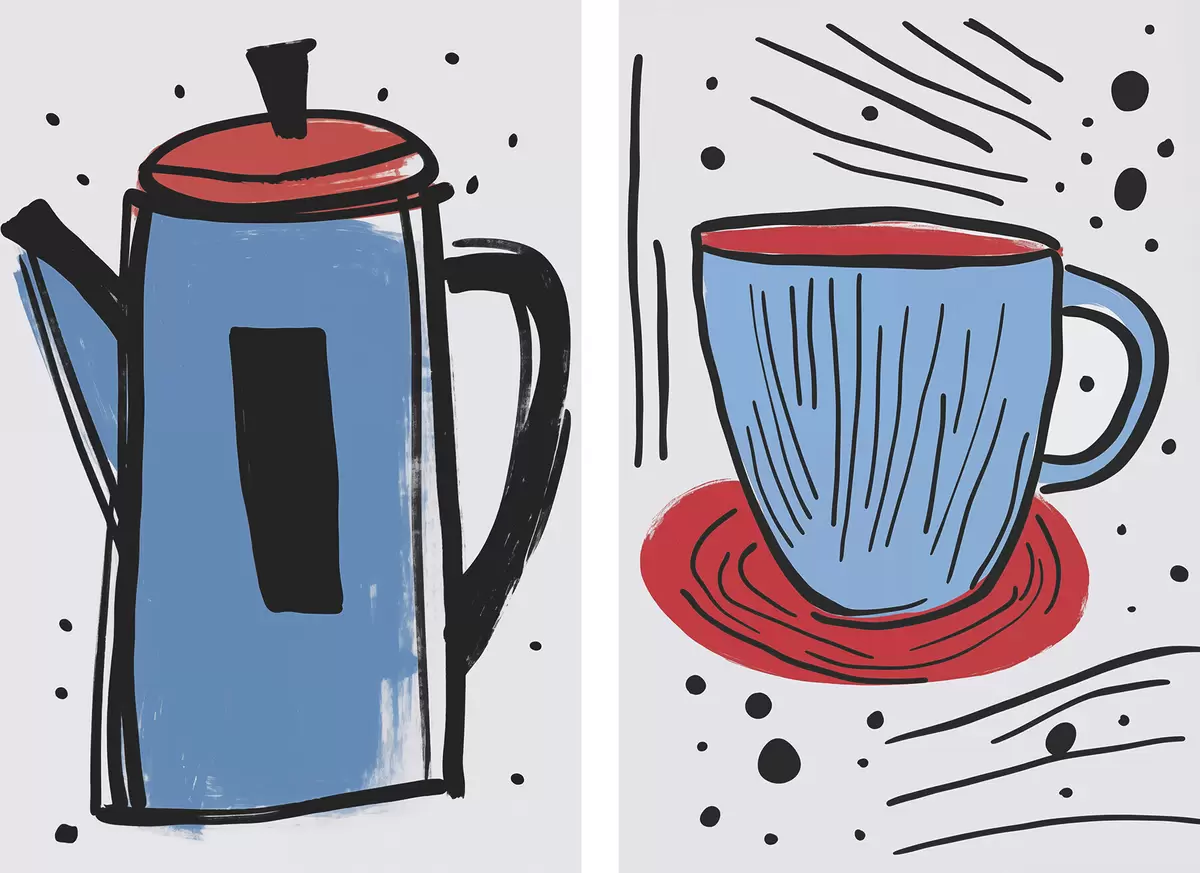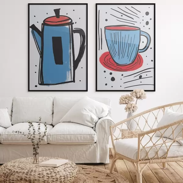 Poster Cafetieră și ceașcă imitație a unui desen primitiv Nr d01225