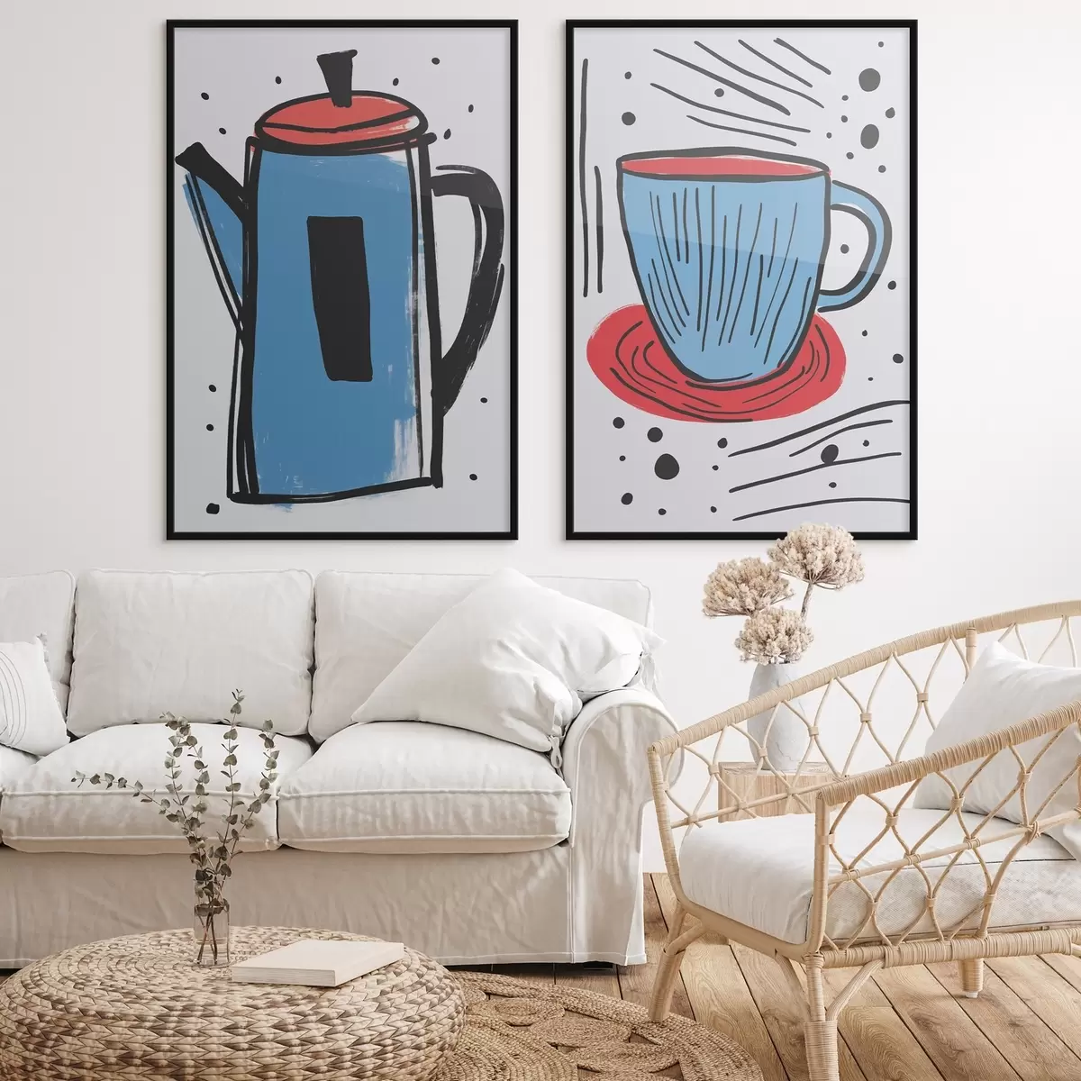 Poster Cafetieră și ceașcă imitație a unui desen primitiv d01225