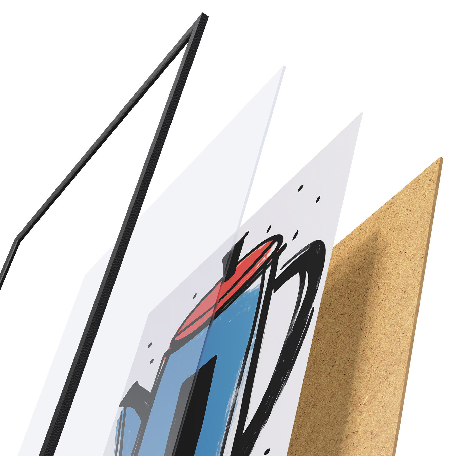 Afișul constă dintr-o ramă, plexiglas, imagine imprimată și suport din PAL. Posterul poate fi agățat imediat pe perete datorită suporturilor de pe spate.