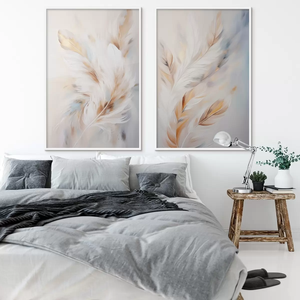 Poster Pene mari și moi, cu o combinație de nuanțe de alb, galben și maro, pe un fundal abstract și deschis. Nr d01247