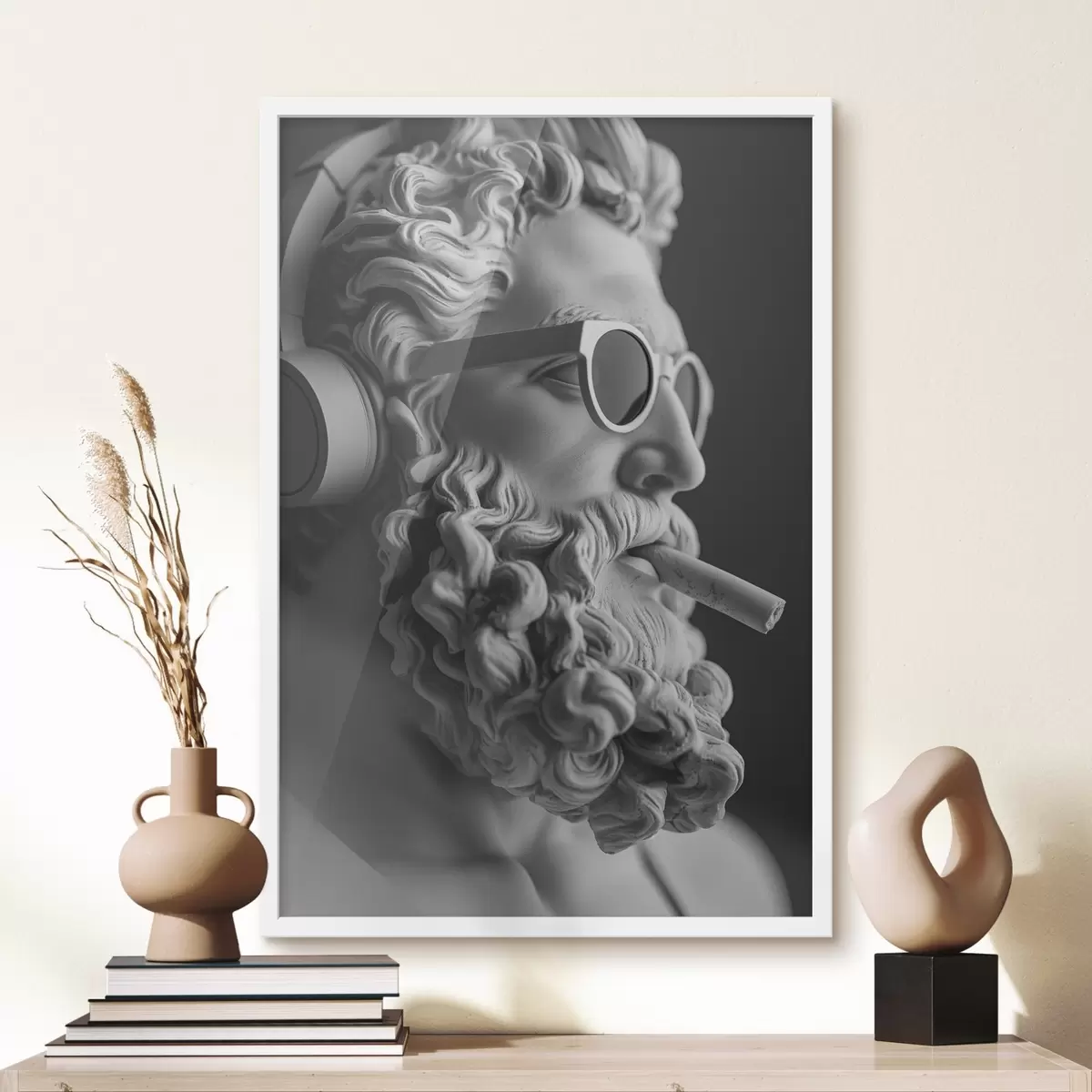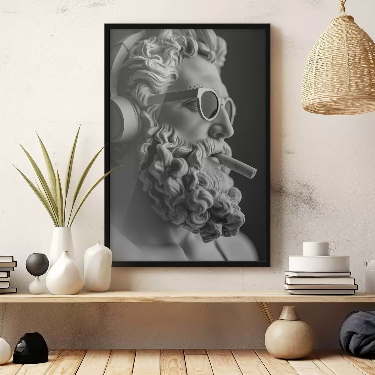 Poster negru și alb sculptura greacă antică a lui Zeus în stil modern f26122