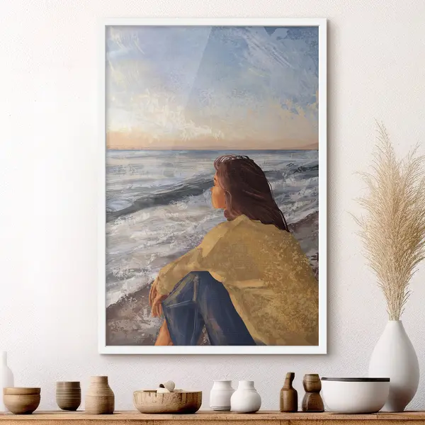 Poster Femeie pe malul mării, contemplând valurile Nr f35317