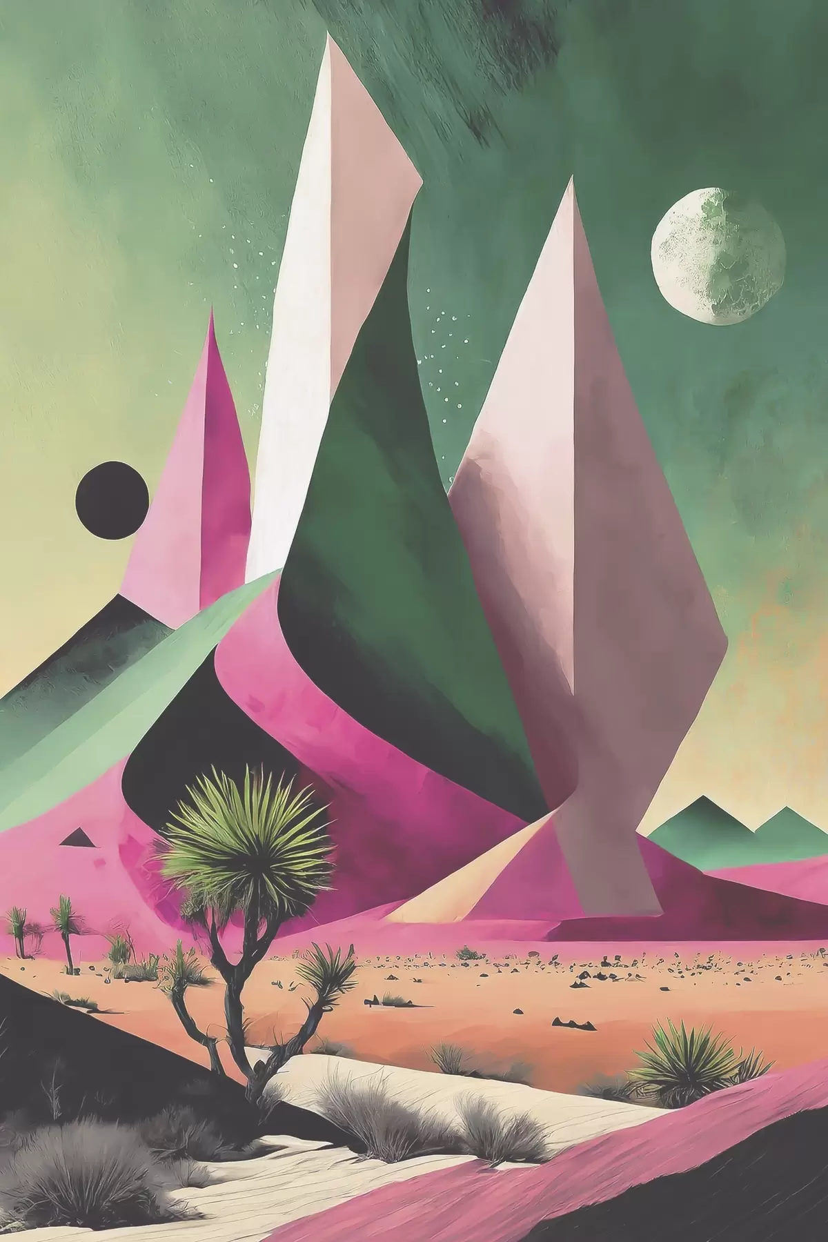 Poster Desert peisaj cu copaci și munți Nr f37360