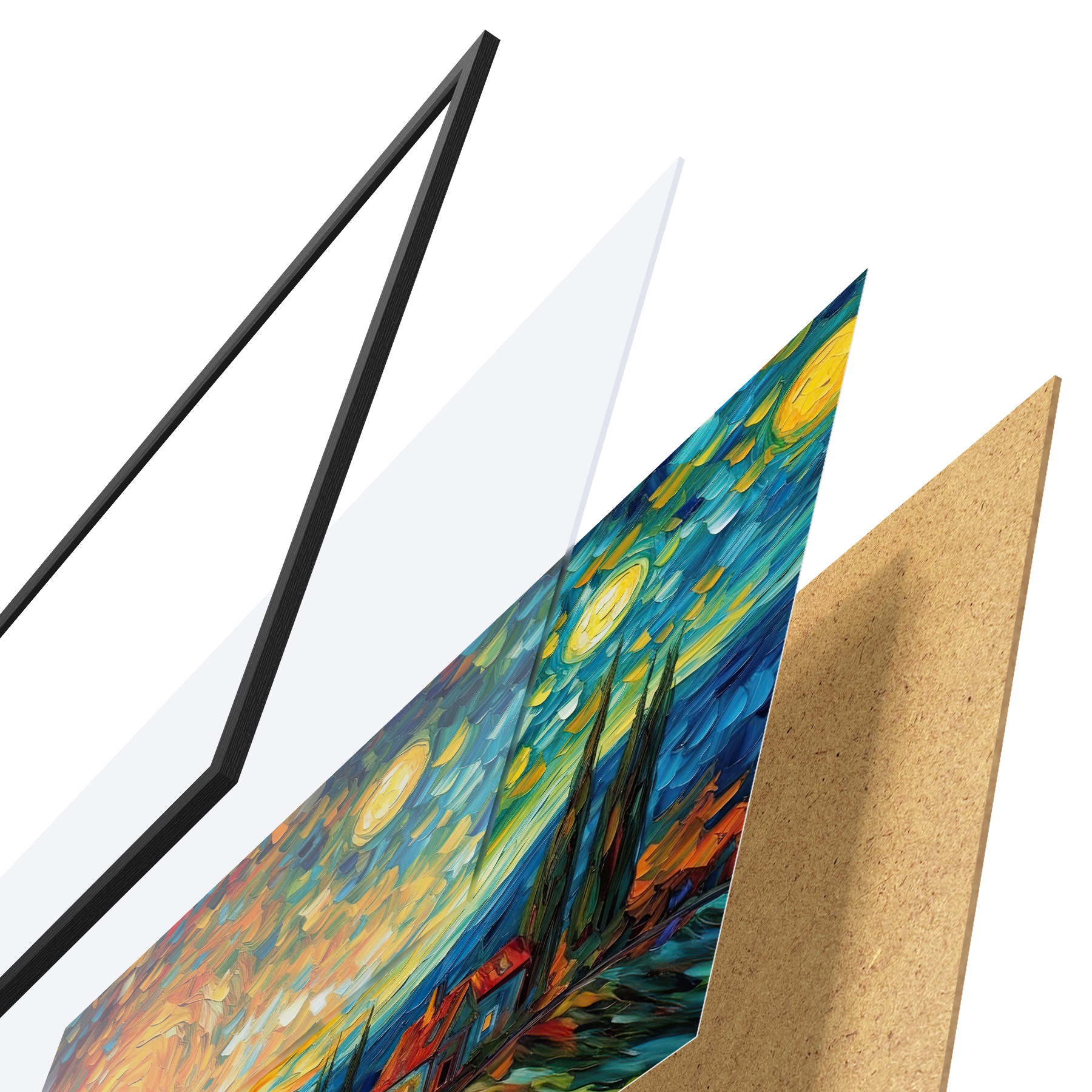 Afișul constă dintr-o ramă, plexiglas, imagine imprimată și suport din PAL. Posterul poate fi agățat imediat pe perete datorită suporturilor de pe spate.