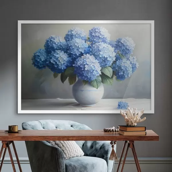 Poster Frumoase hortensii albastre în vază Nr f38696