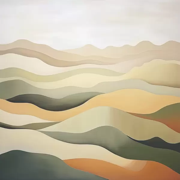Poster Dealuri, peisaj abstract, guașă, verde, ocru, sepia, gri Nr f38952