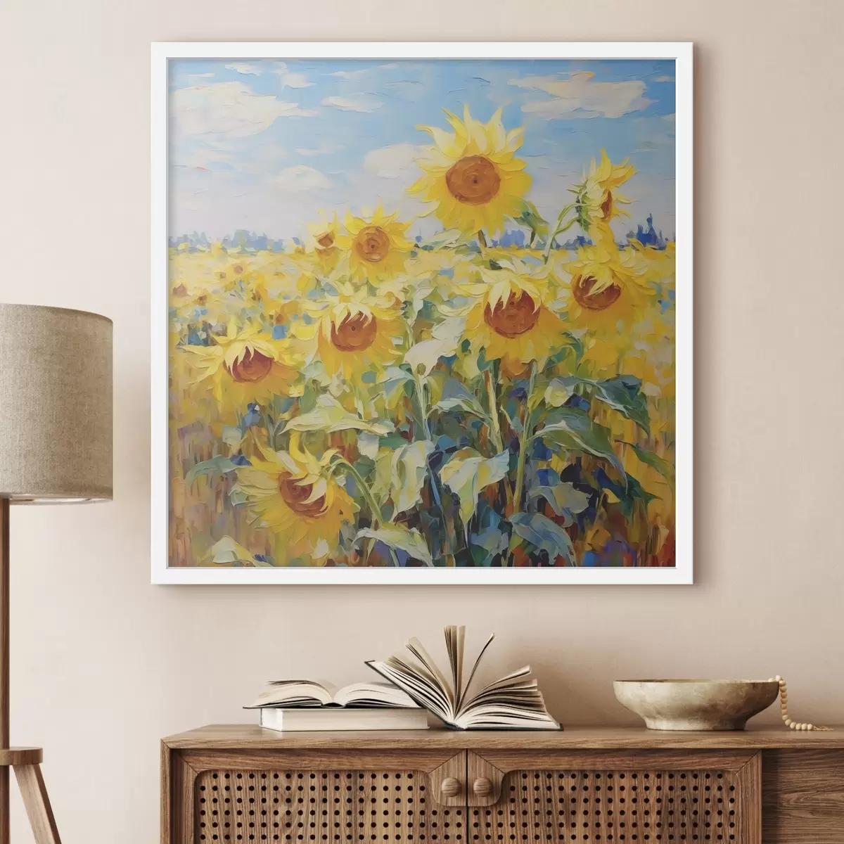 Poster Sunflower câmp pictură în ulei, galben și albastru Nr f38953