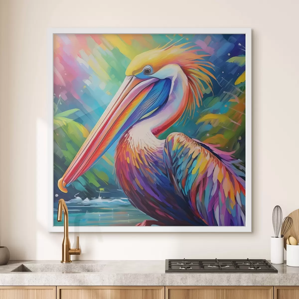 Poster Pelican vibrant în împrejurimi colorate f39054