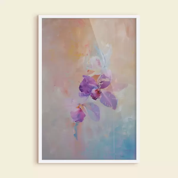 Poster Pictură impresionistă de orhidee, culori pastelate deschise, imprimare botanică semi-abstractă, cu fundal neutru Nr f39463