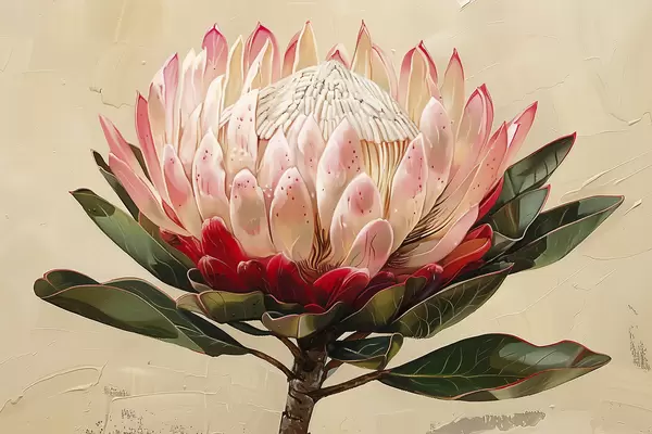 Poster Floare Protea, desen acrilic, floral, culori naturale moi Nr f39780
