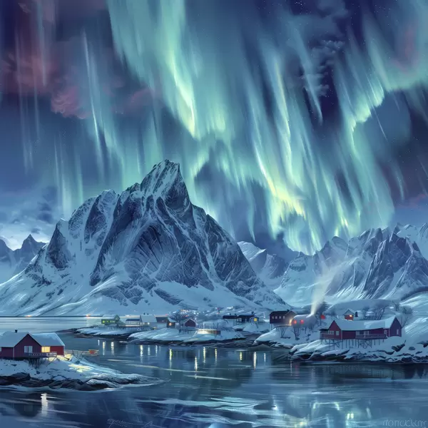 Poster Lumini nordice magice, sat de iarnă în Norvegia Nr f40301