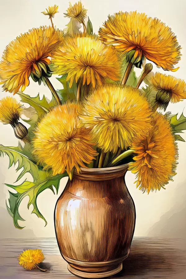 Poster păpădie, buchet de păpădie într-o vază, păpădie galbenă Nr f40418