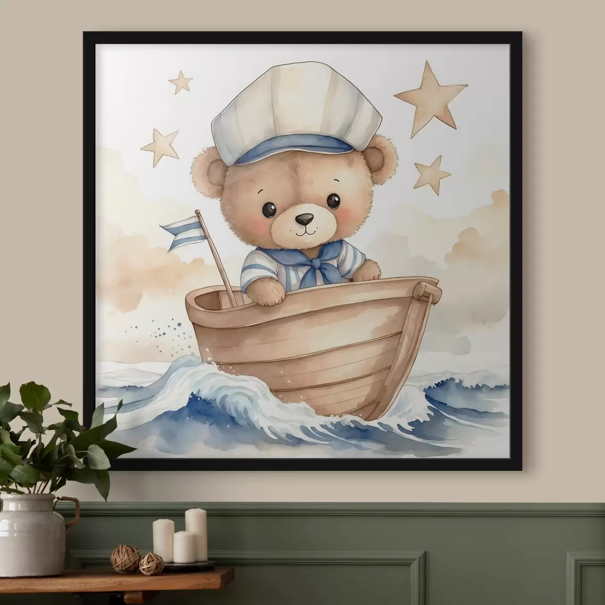 Poster Drăguț acuarelă ursuleț de pluș într-o barcă f40428