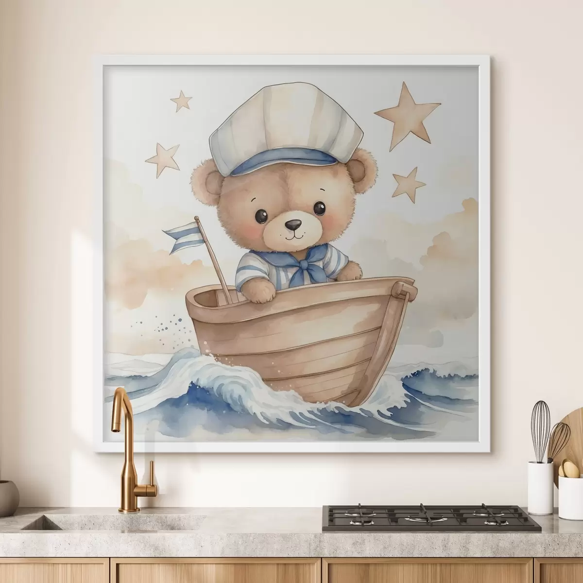Poster Drăguț acuarelă ursuleț de pluș într-o barcă Nr f40428